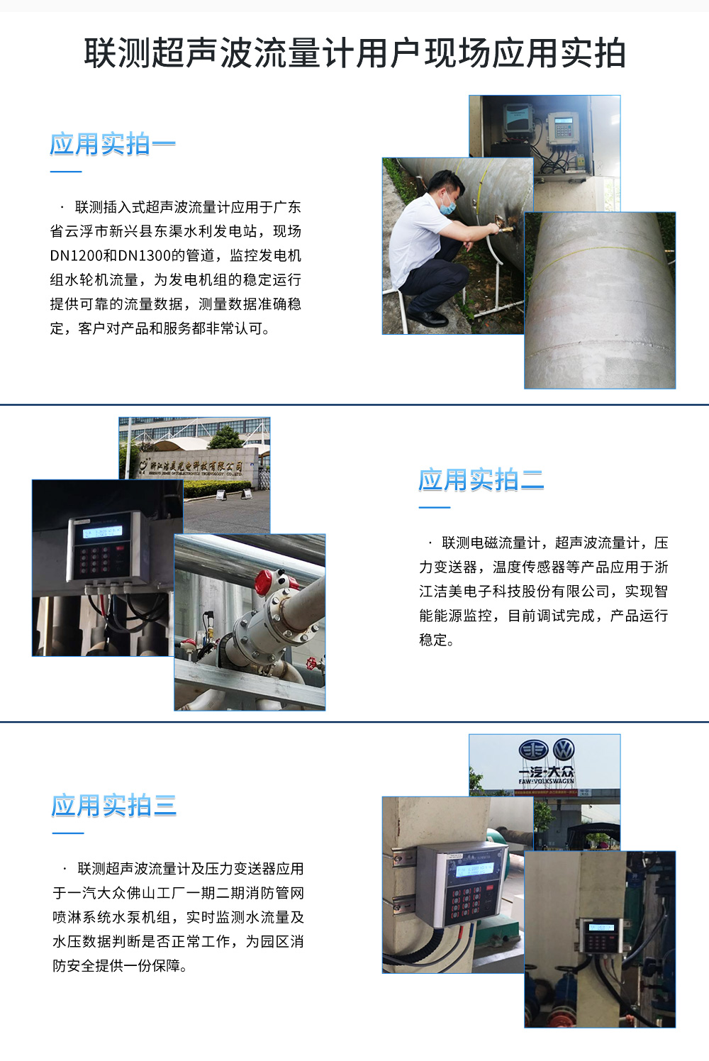 測(cè)超聲波流量計(jì)適合相對(duì)純凈液體流量的管外測(cè)量,尤其是在水流量測(cè)量、在工業(yè)循環(huán)水、空調(diào)制冷循環(huán)水、原水、高壓水、自來(lái)水,污水排放管等廣泛應(yīng)用。