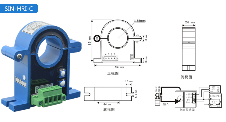 聯測_開合式霍爾電流變送器_孔徑: 20/22/38....46*180mm_