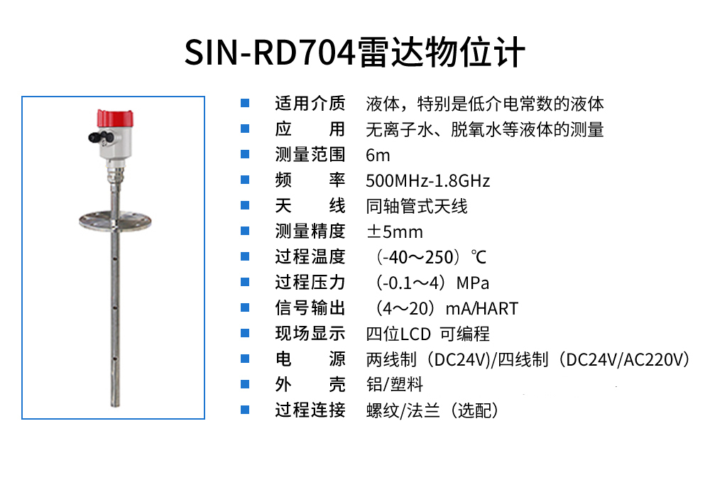 聯測_SIN-RD704雷達液位計_適用于無離子水、脫氧水等液體_