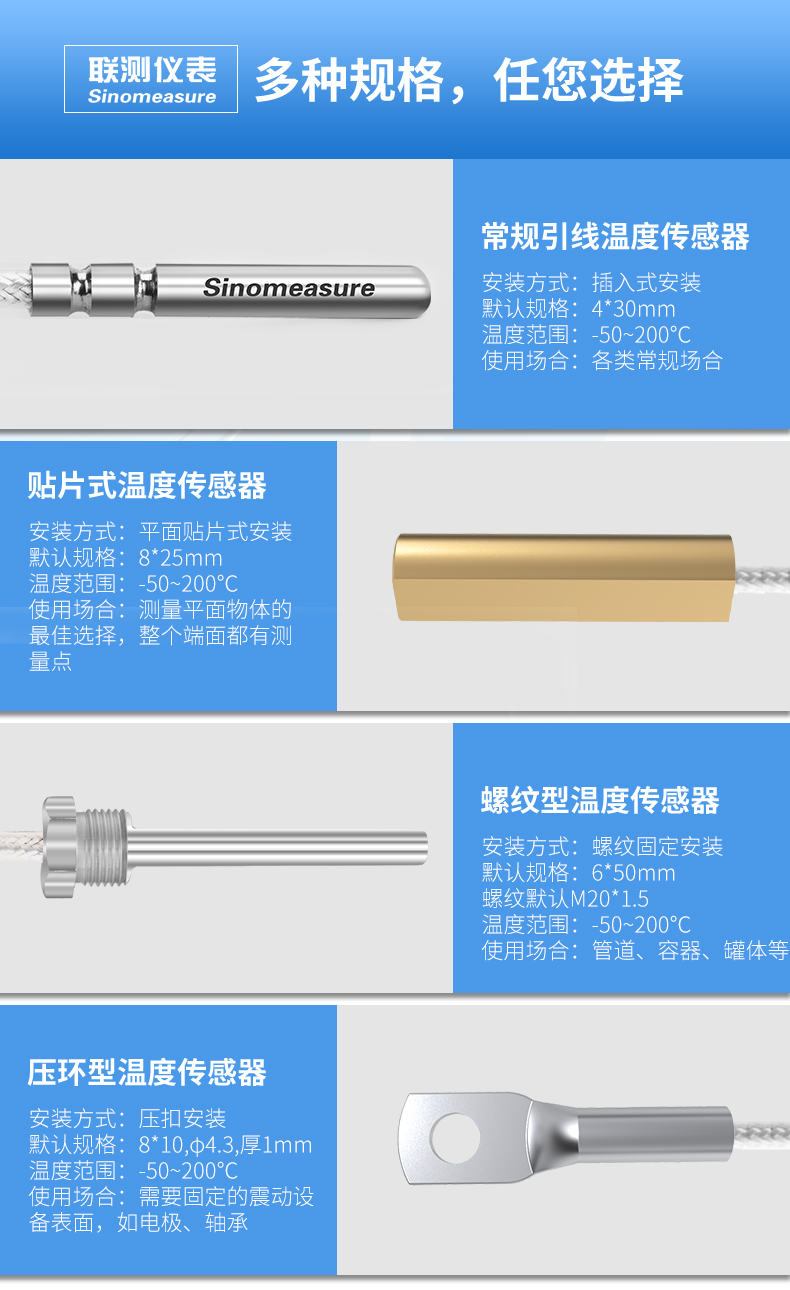 聯測溫度傳感器可以直接測量各種生產過程中液體,蒸汽和氣體介質以及固體表面的溫度,通常和顯示儀表、記錄儀表等配套使用。